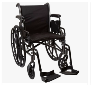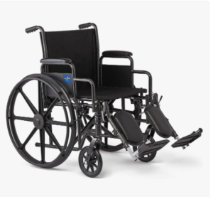 Elevated legrests provide customizable support. Desk-length armrests provide close access to tables and desks. Folds up easily by lifting the seat, making it flat and easy to store or transport.Add to cartMedline wheelchair, 20″ seat, 300 lb. capacity